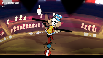 The circus, led by a single clown, goes through stages every day.