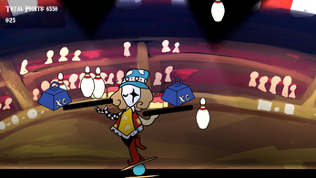 Hold and drag the big ball horizontally. Under the theme of "falling, balances the objects to get more point.